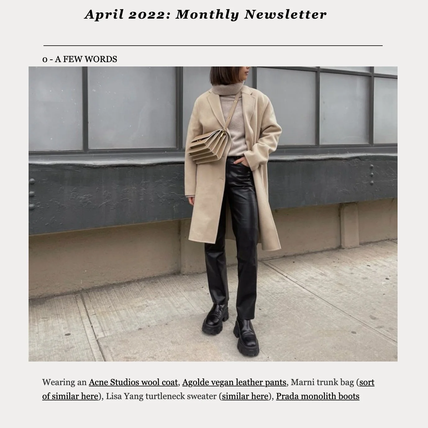 Topics covered: Transitional Jackets, Caps, Styling Advice, Five Things I Bought, Favourite Interior Design Studios